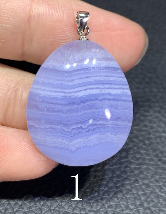 AAAA+ Natural Blue Lace Agate Stone Pendant, S925 Pear Pendant, Agate Pendant,Healing Stone Jewelry ET1069