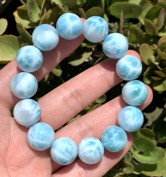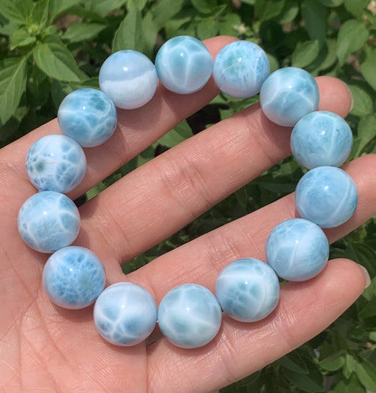 AAA+ Natural Authentic Dominican Larimar Bracelet,Gems Jewelry,Gems Bracelet,13mm Bracelet,Crystal Bracelet ET678